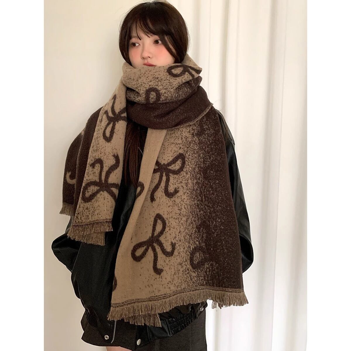 リボン+グラデーション ワイドマフラー・ショール ブラウン WT00073