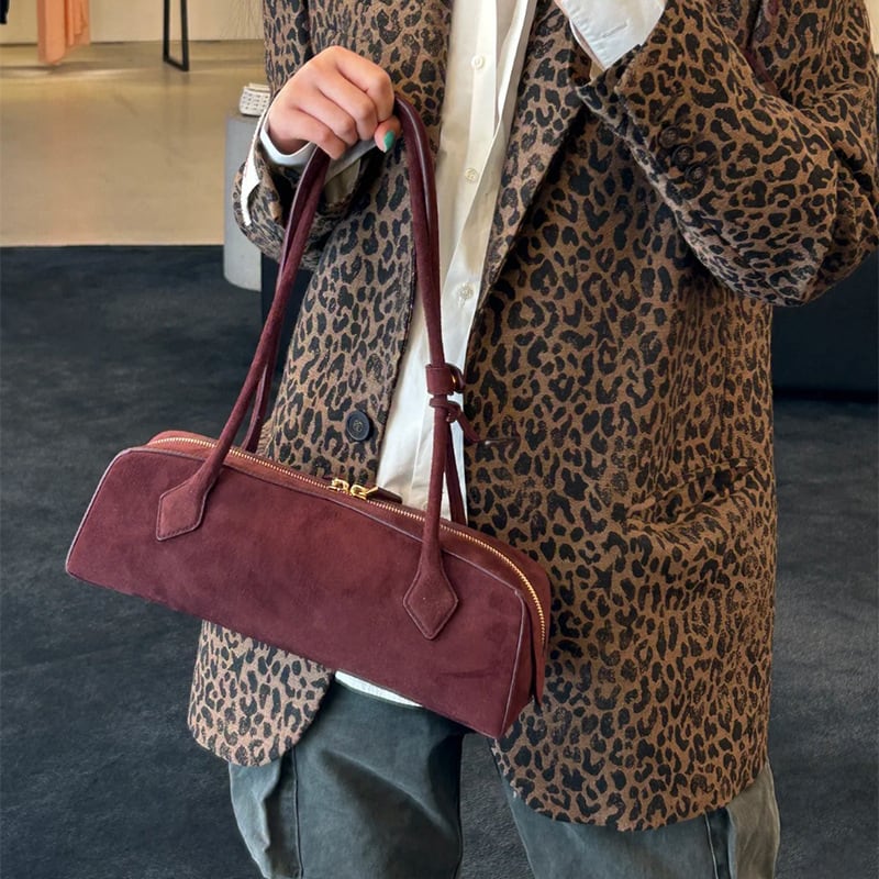 リアルスウェード ロングボックス ハンドバッグ バーガンディー BA00858