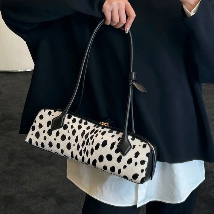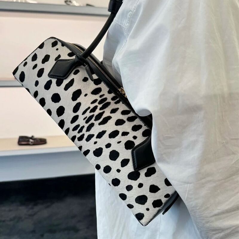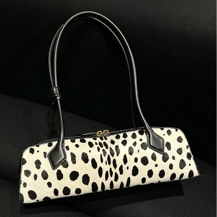 リアルレザー ダルメシアン柄 ロングボックス ハンドバッグ BA00857