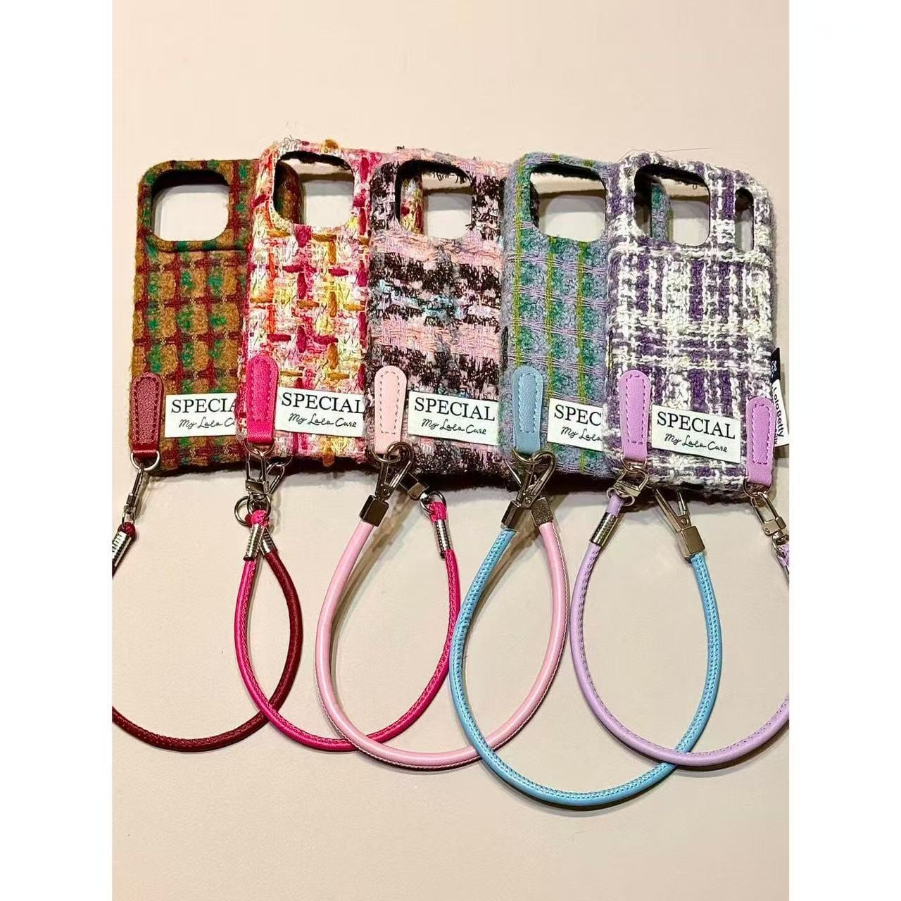 ニットツイードチェック ハンドストラップ付き iPhoneケース グレー/グリーン TA00259