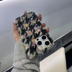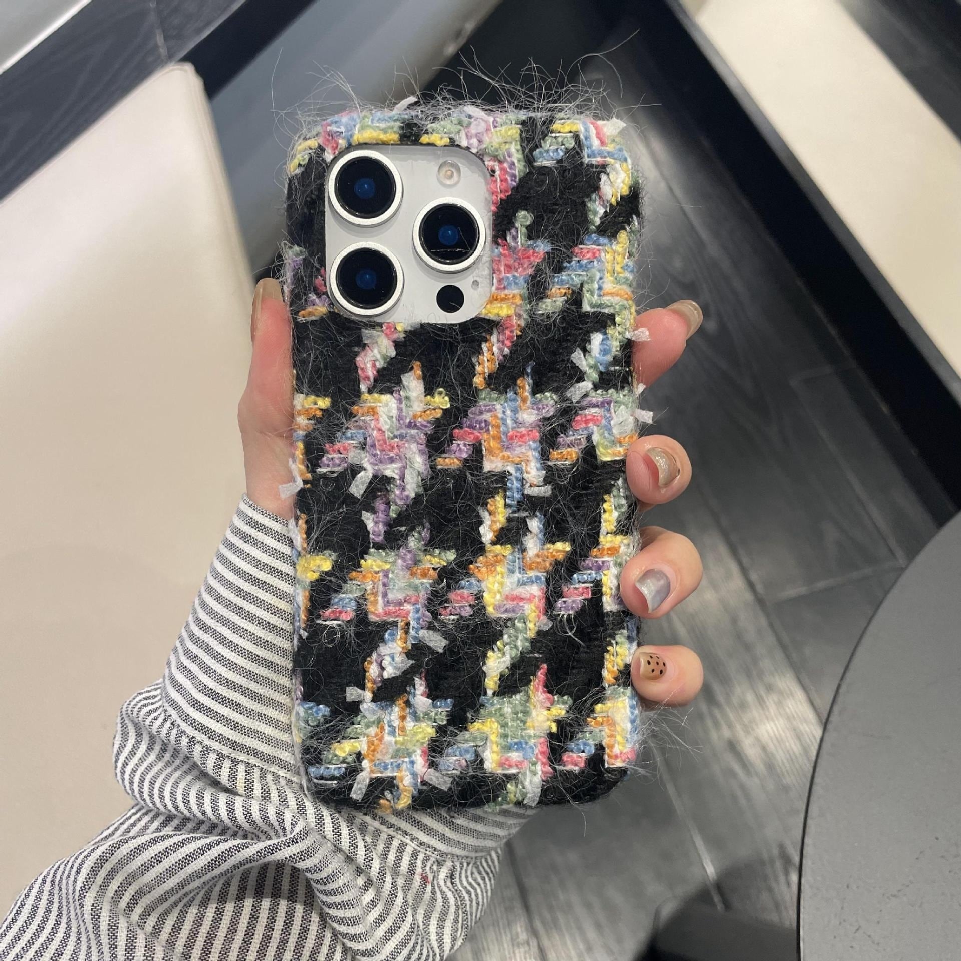 シャギーニットツイードを使用したグレンチェック柄のiPhoneケースです。マルチカラーツイードのチェック柄がエレガントでスタイリッシュなデザインです。ボディーには丈夫なポリカーボネートを使用しています。ハードシェルのケースが大切なiPhoneを傷や汚れ、破損から守ります。秋冬のムードにぴったりのデザインと、指先だけでなく心まで温かくなる素材感が魅力です。