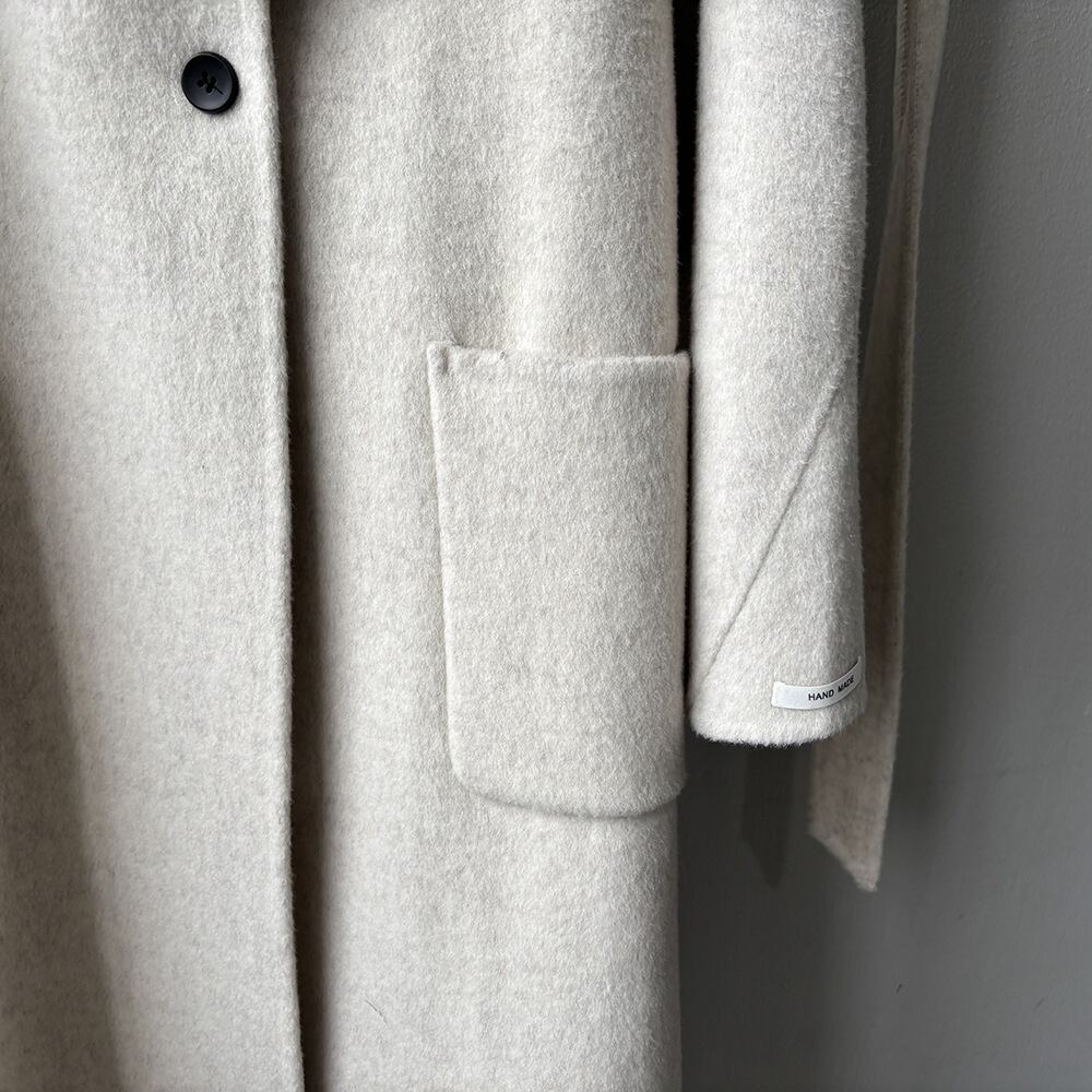 スタンドカラー ウエストベルト付き ウールロングコート アイボリー CT00155