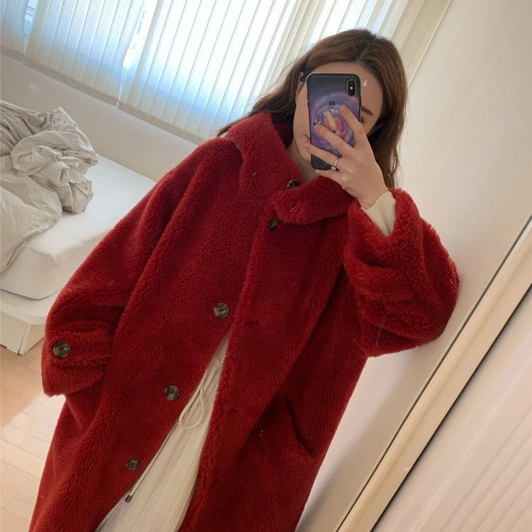 フード付きのエコファーのロングコートです。ユニークなエコファーの質感でスタイリッシュな雰囲気に仕上がります。ダークカラーのアウターが多い中で、ひと際目立つユニークなデザインとポップなレッドが魅力です。厚みのあるエコファーを使用し、膝も隠れるロング丈、フードとポケットもあり、裏地にはエコスウェードを使用しており、防寒面も◎。お手持ちのアイテムとも合わせやすい、トレンド感も楽しめる便利なアウターです。