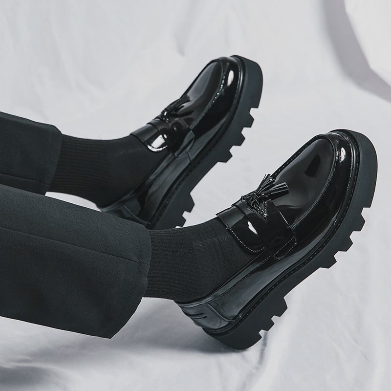 パテントエコレザー プラットフォーム タッセルローファー ブラック SH00339