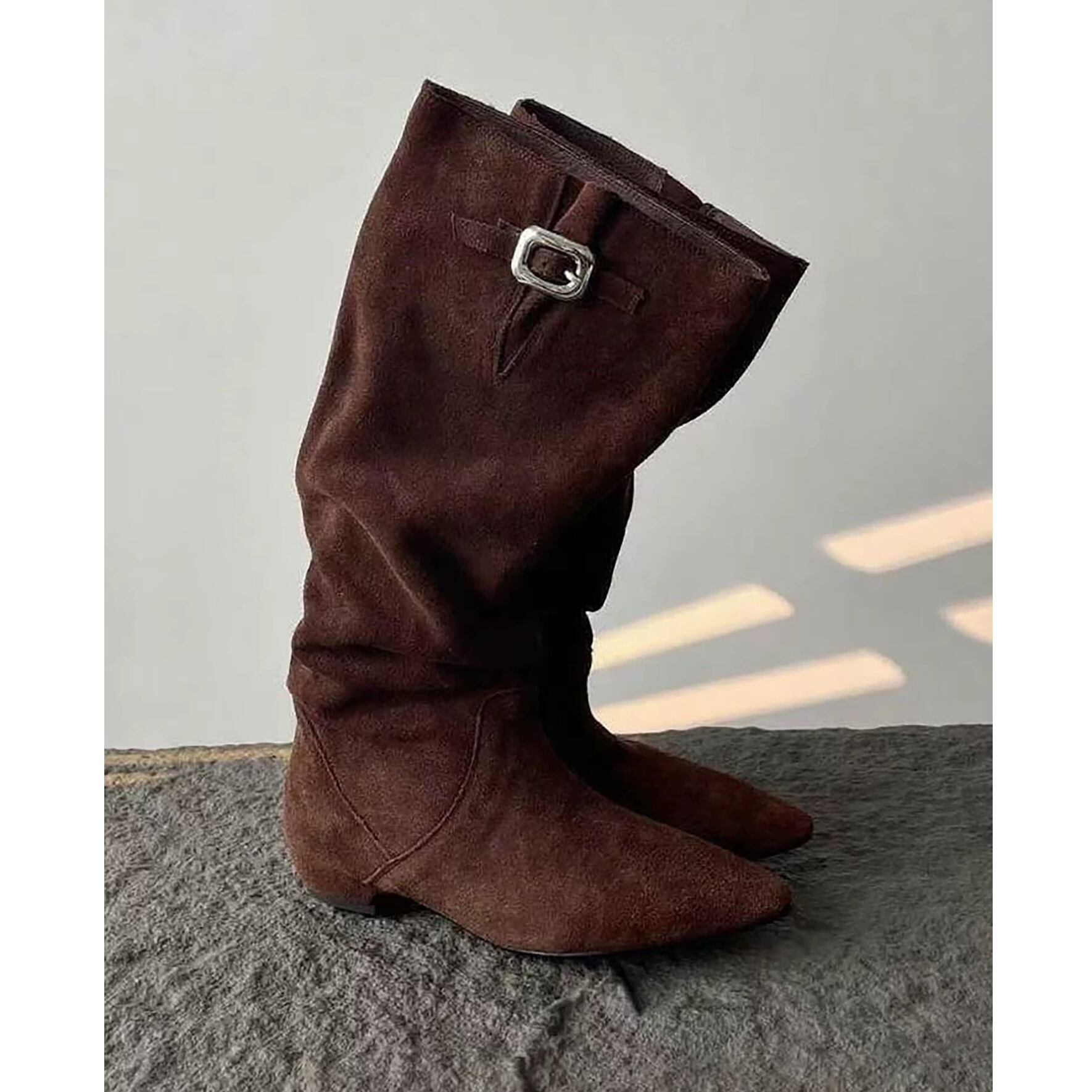 ショート~ロング丈 ポインテッドトゥ スウェードブーツ ブラウン BU00044