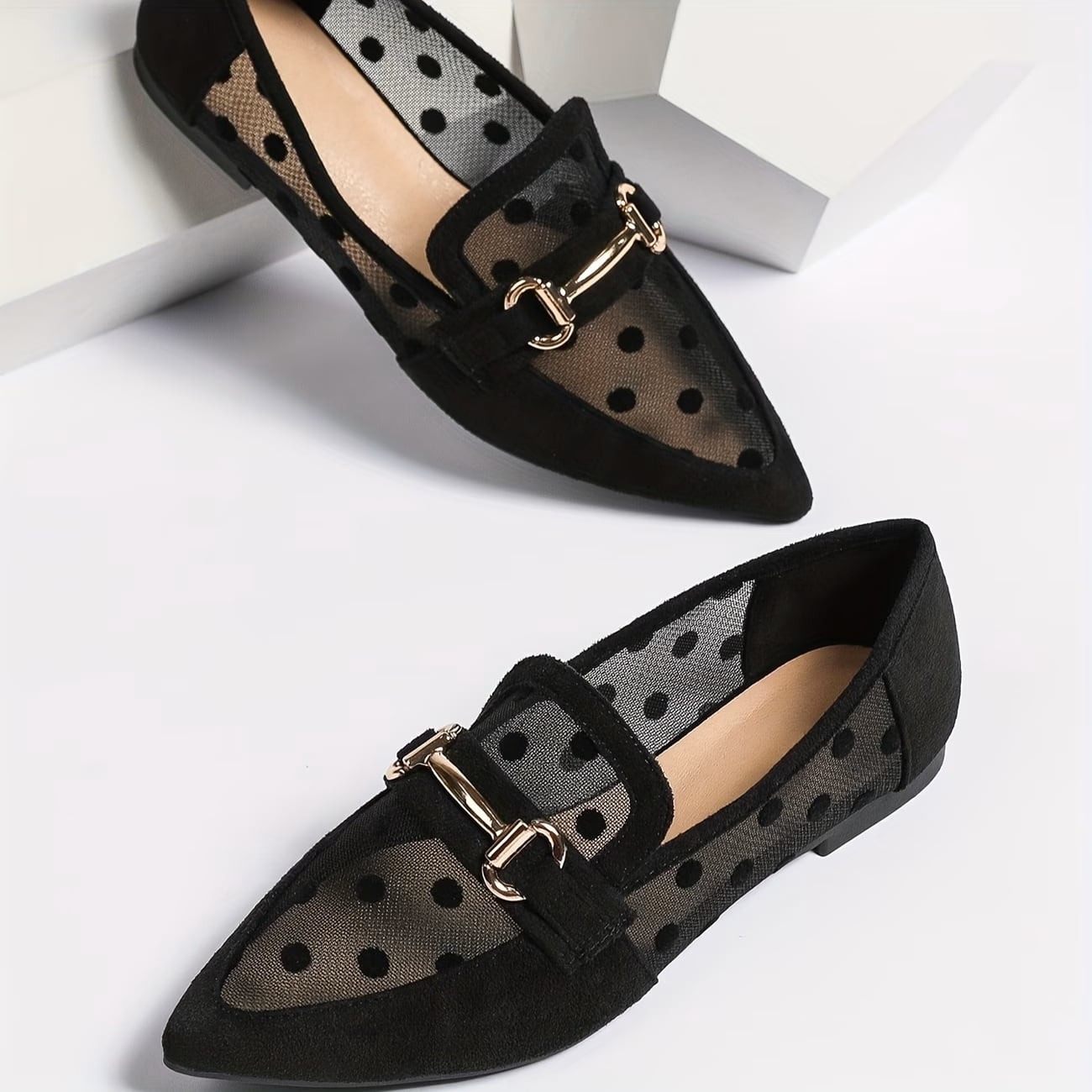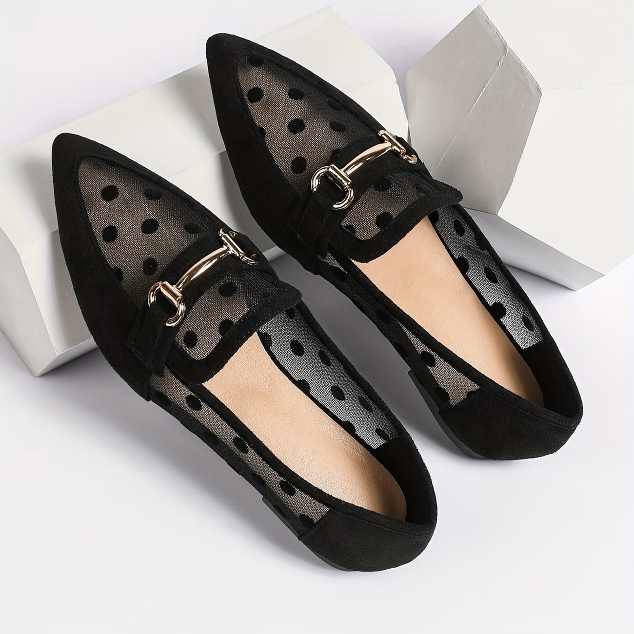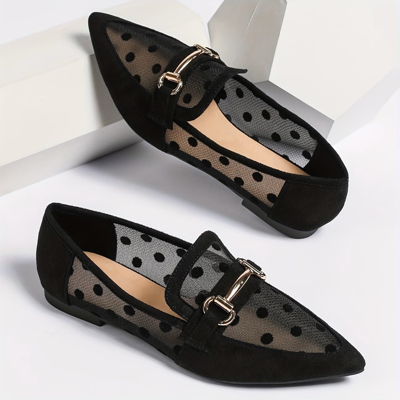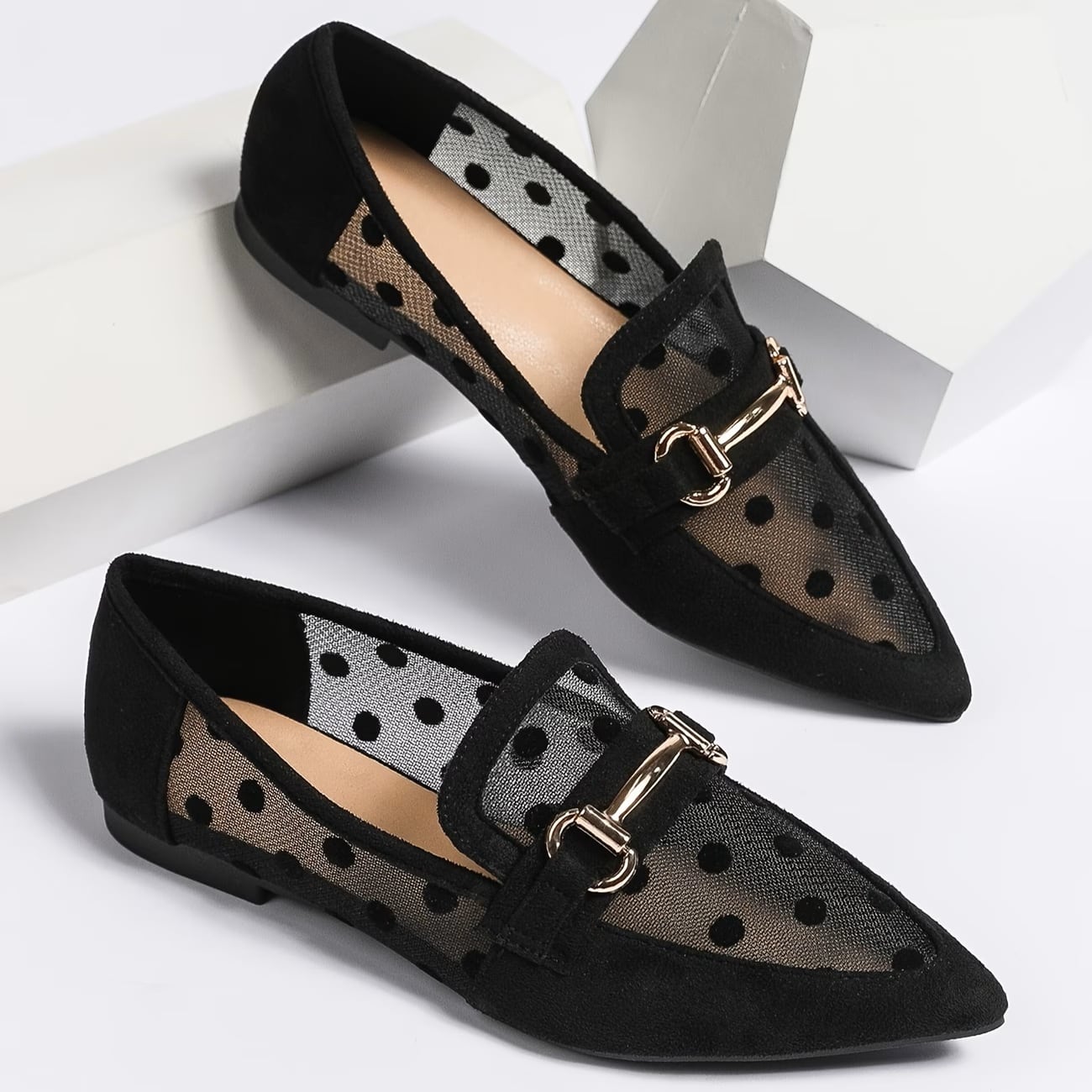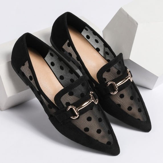 シアー生地に入った水玉がフェミニン&ユニークなビットローファーです。シアー素材とクラシックなデザインのミックスがスタイリングを盛り上げます。フラットシューズで歩きやすさも◎。ストッキングや靴下などのレッグウェアでレイヤードも楽しめます!