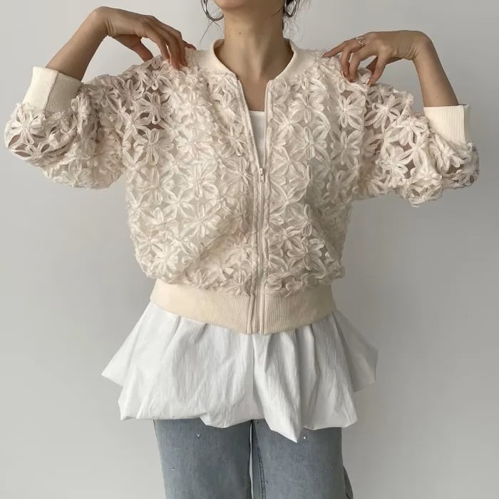 シアーフラワー ボンバージャケット アイボリー JK00127