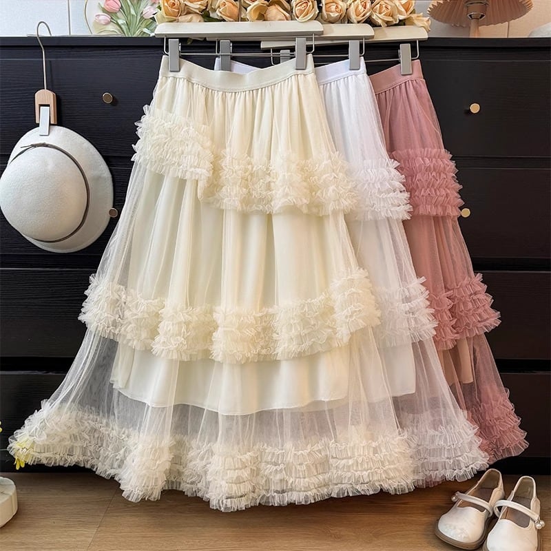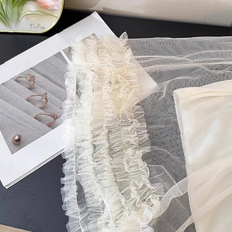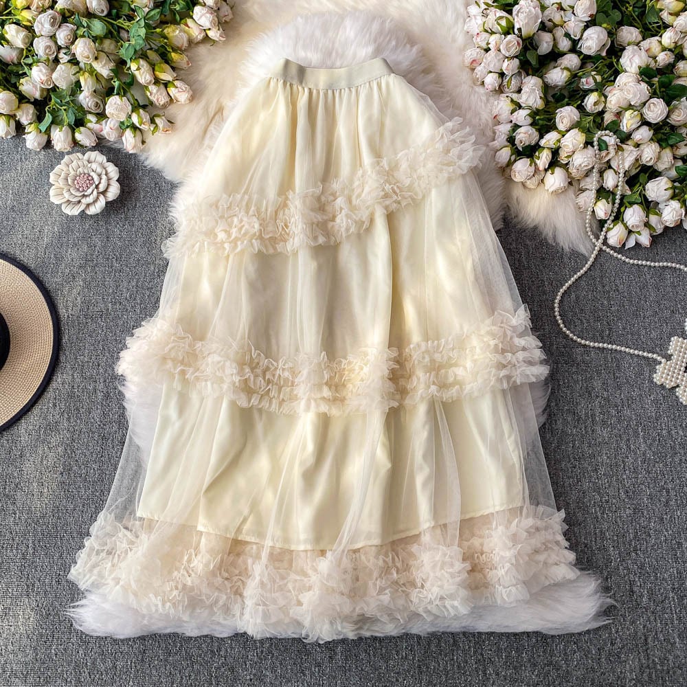 トリプルフリル チュールロングスカート アイボリー SK00281