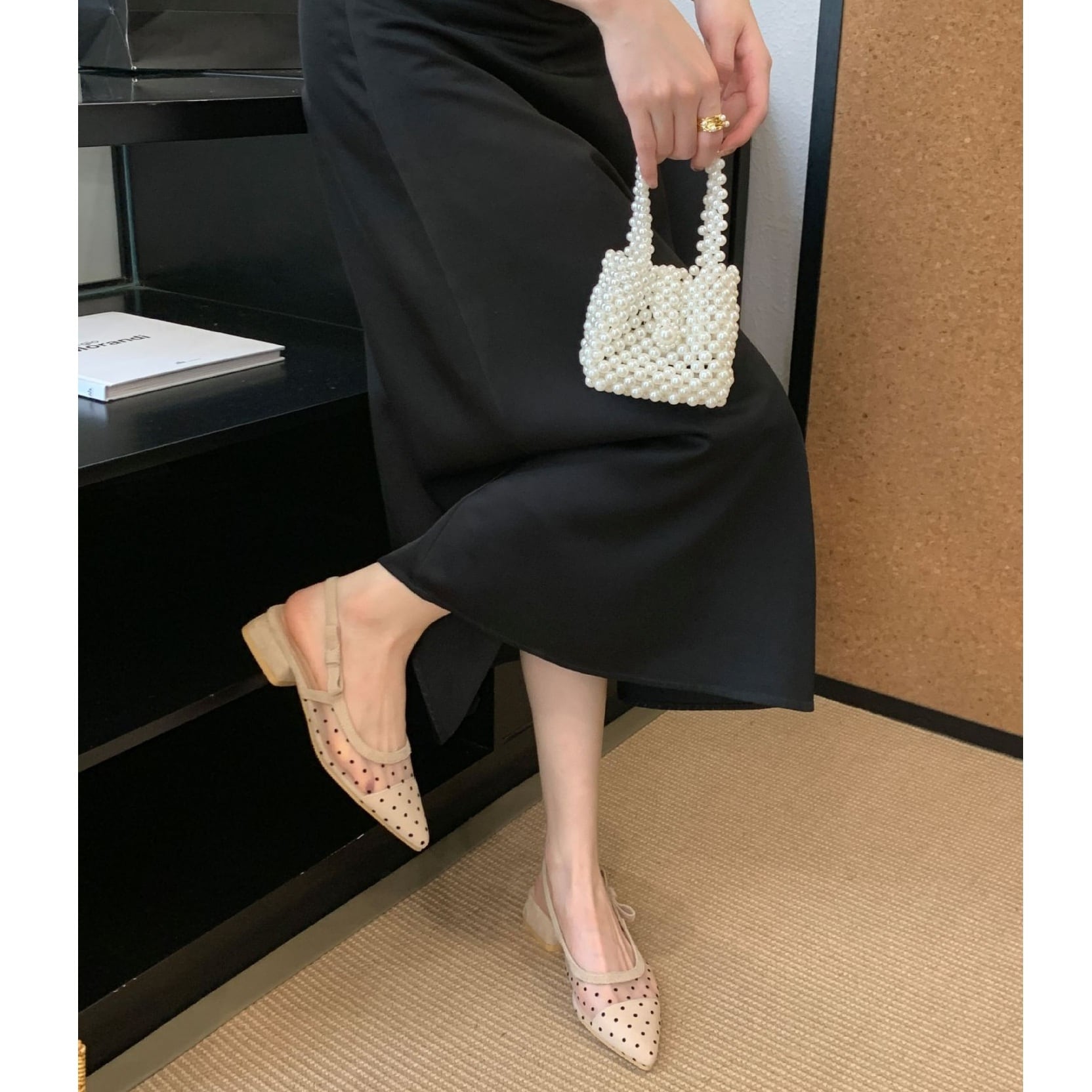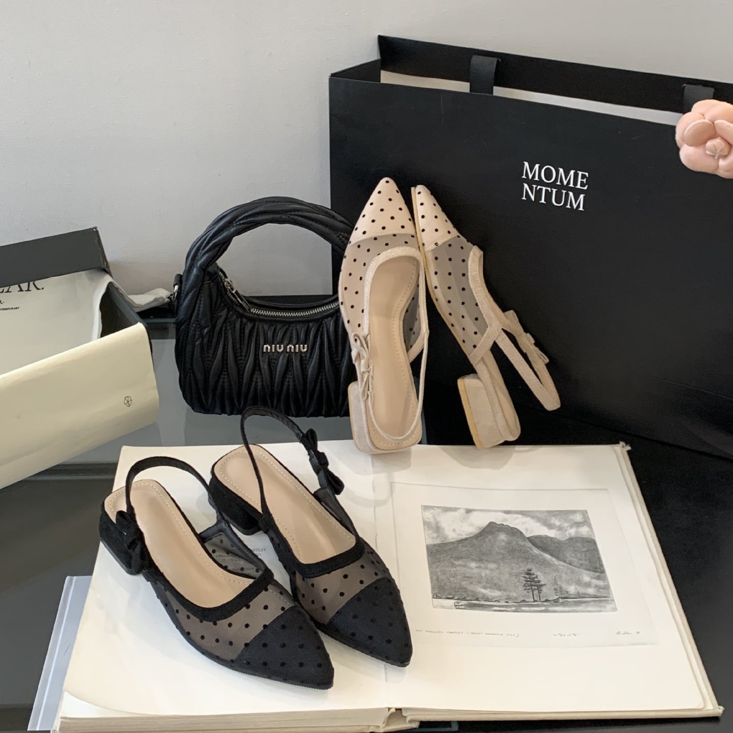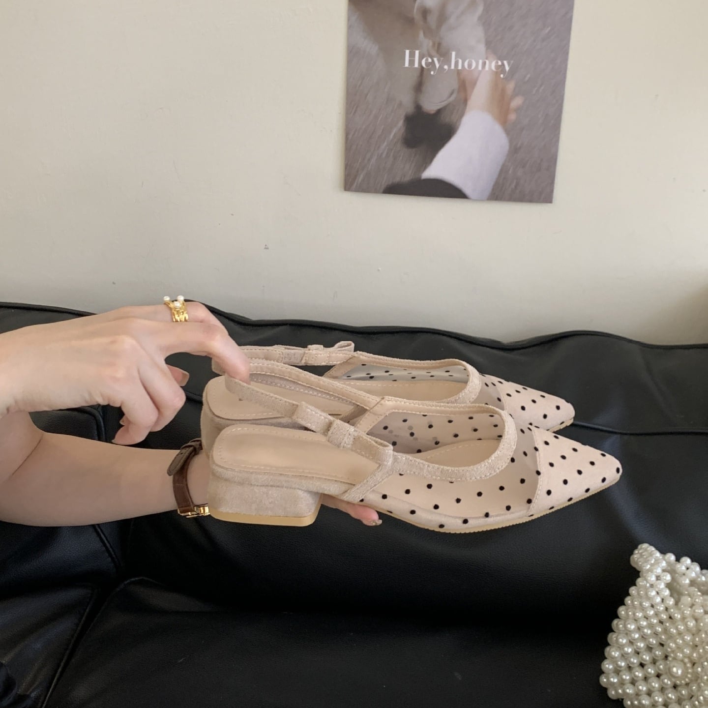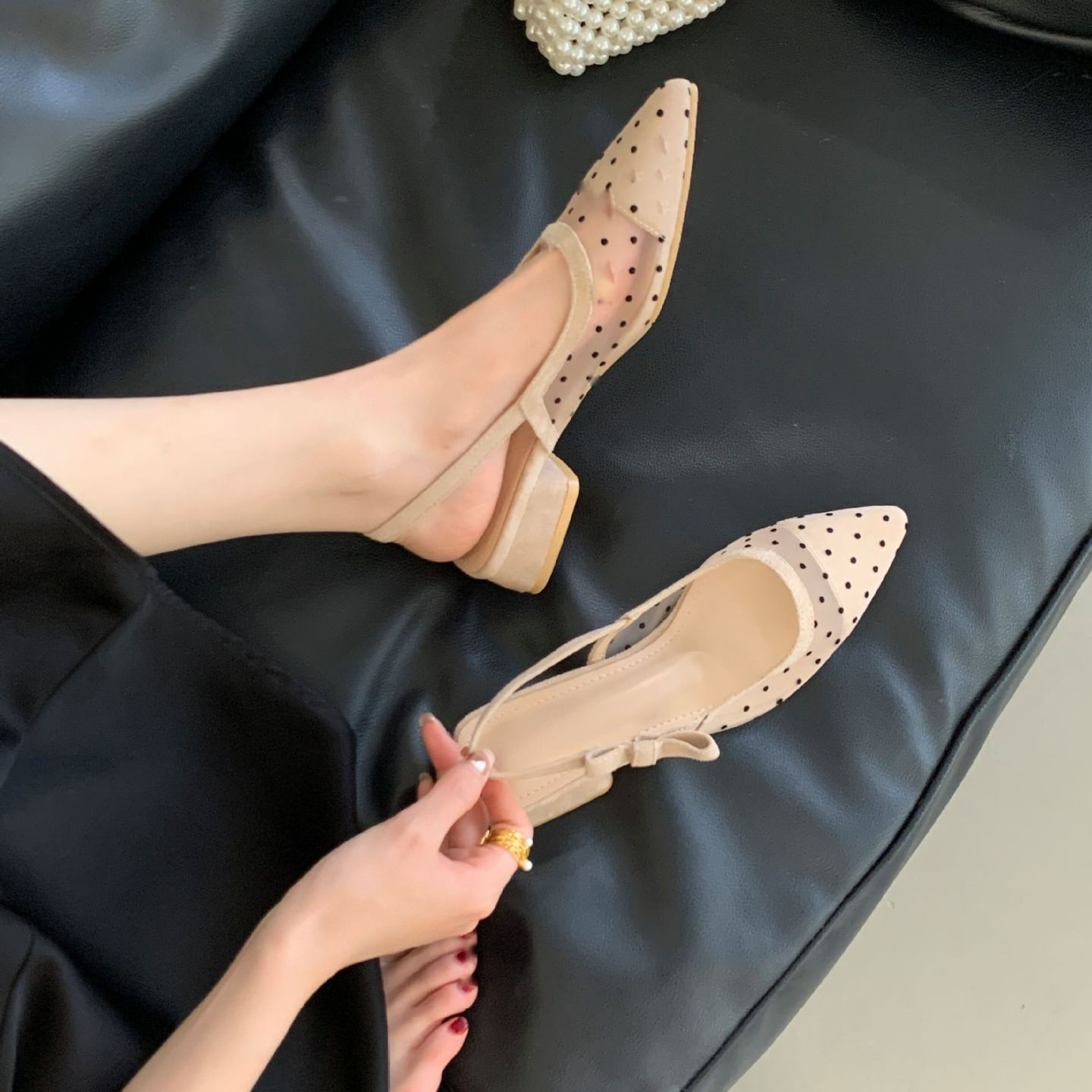 シアーポルカドット(水玉)スリングバック+サイドリボン ヒールパンプス ベージュ SH00408