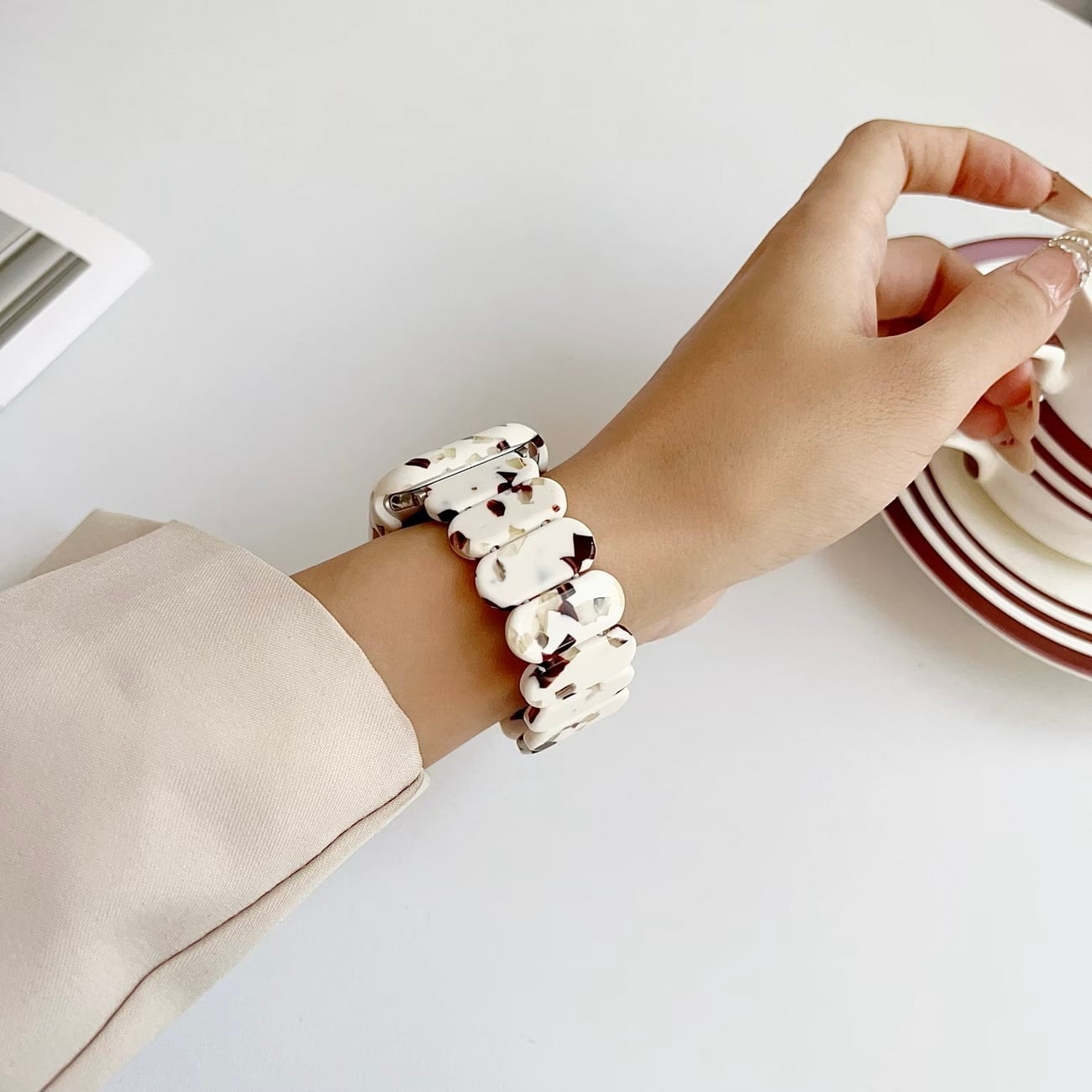 オーバルレジンブロック Apple Watch バンド・ベルト アイボリーヌガー TA00252