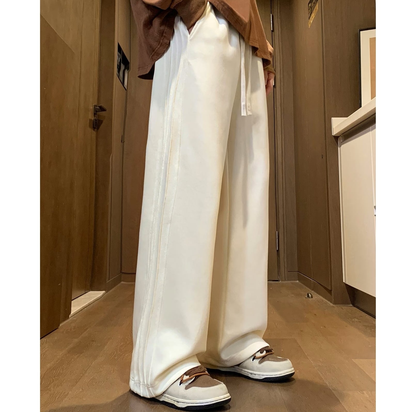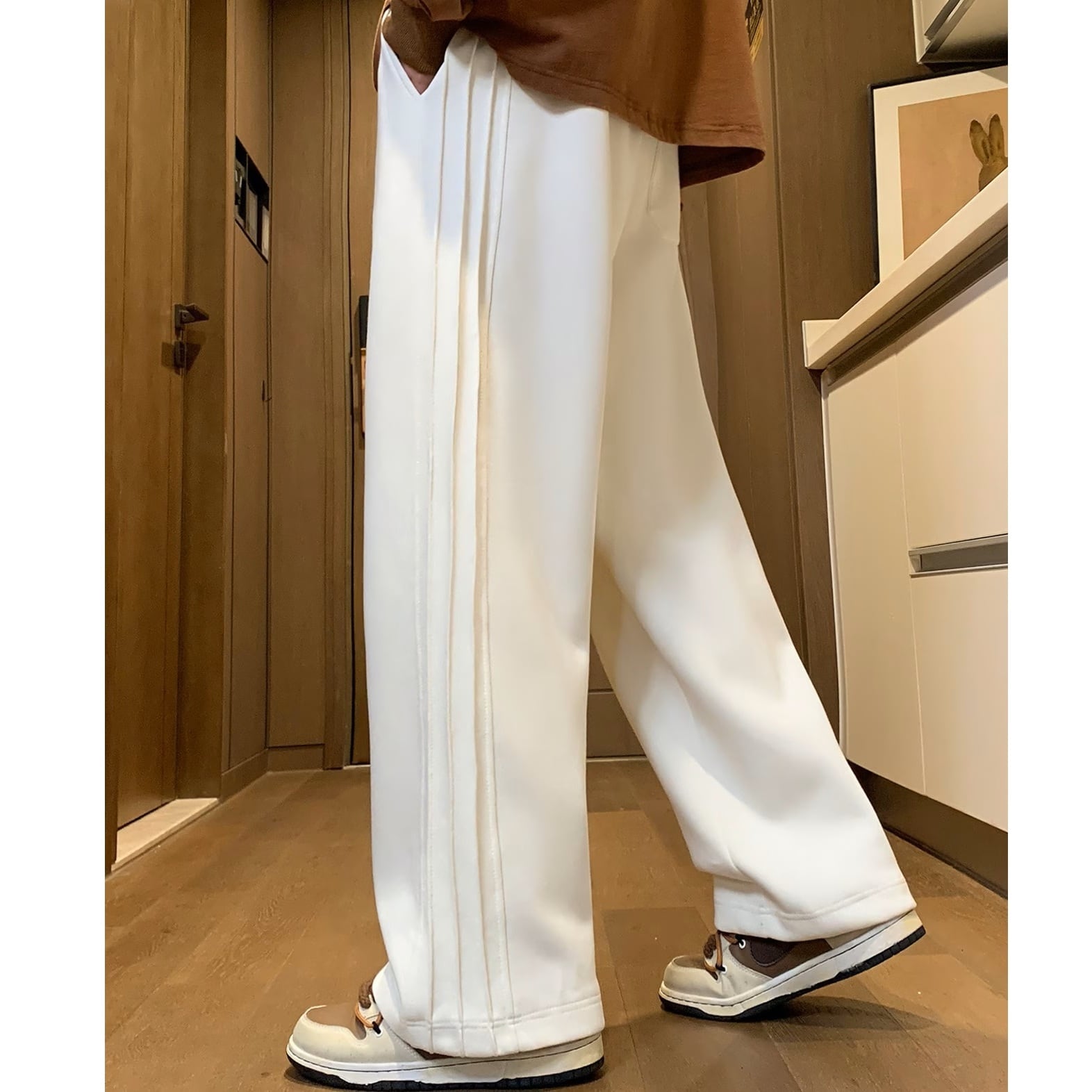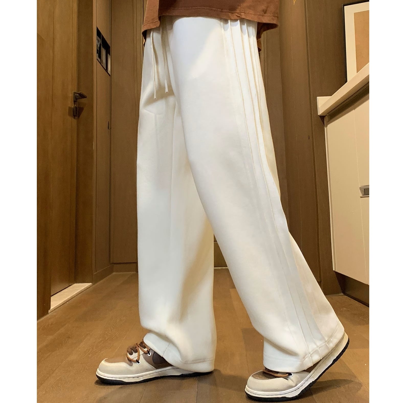 サイドステッチライン ワイドレッグ スウェットパンツ アイボリー PT00113