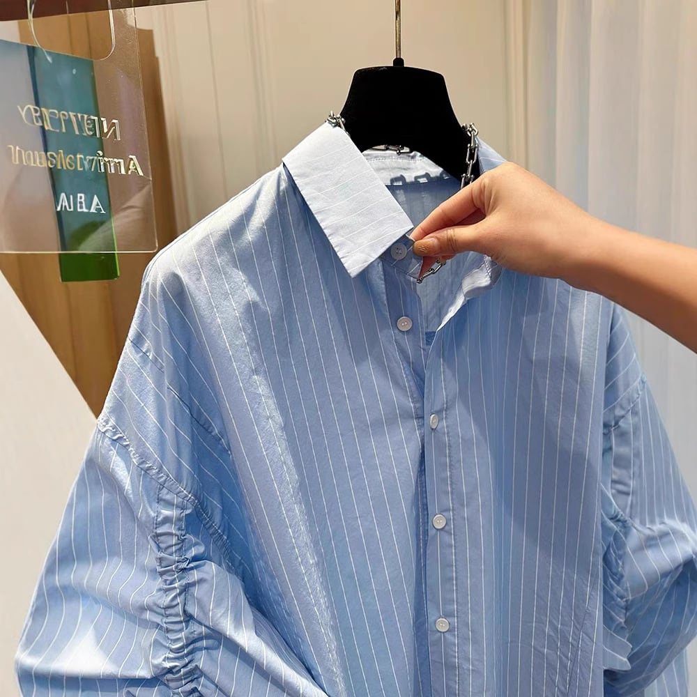 シャーリングスリーブ デザインシャツ ブルーストライプ BL00228