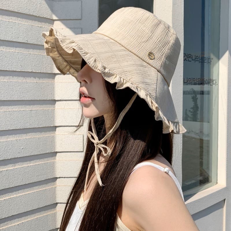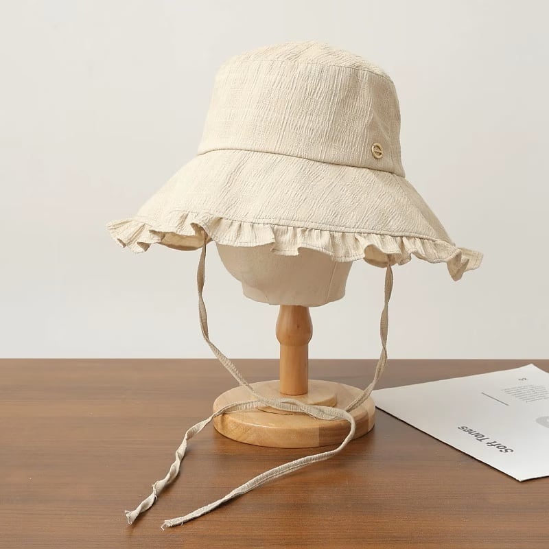 フリルパイピング ストラップ付き バケットハット ライトベージュ BO00150