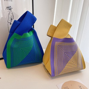 人気のニットバッグに、ジオメトリック柄が登場です。カラーリングもスタイリッシュで、アクセントにおすすめです。軽く、シワにならず、小さくまとめられて旅行先でも便利です。