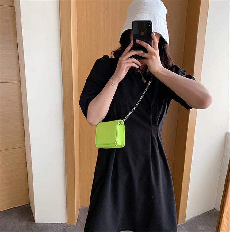 スクエアステッチ チェーンポシェット ネオングリーン BA00136