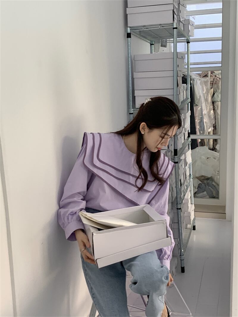 アシンメトリーカラー パイピングブラウス ラベンダー BL00008