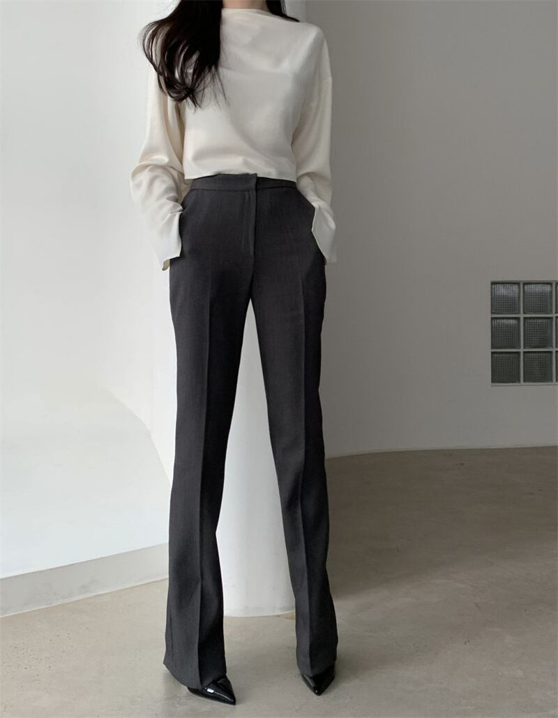 背中の細いストリングが生み出すアンニュイなバックスタイルがエレガントなブラウスです。袖のフレアも美しいです。ジャケットのインナーとしてもおすすめです。