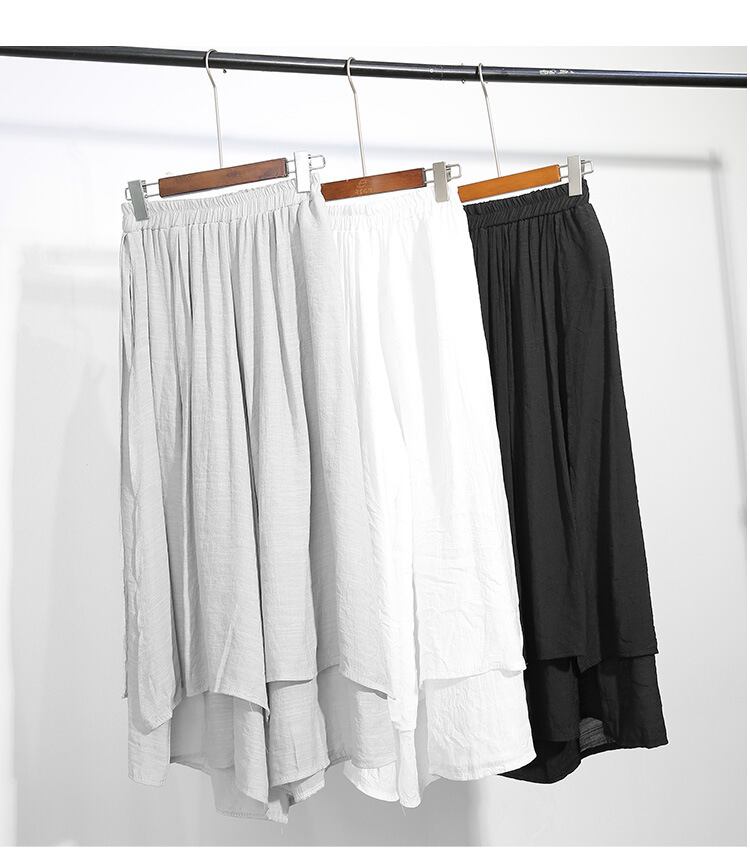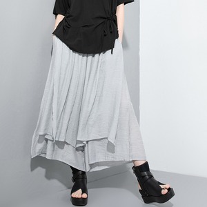 裾の切りっぱなしがスタイリッシュなガウチョパンツです。切りっぱなし+麻素材のシルエットが楽しめます。スカートとパンツ、どちらのイメージでもコーデが可能です。