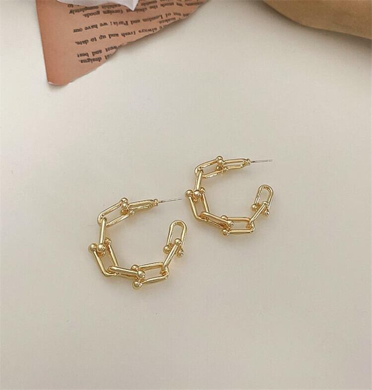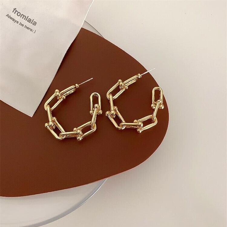 ハードウェアモチーフのフープピアスです。普通のフープピアスよりもインパクトのあるデザインです。幅広いスタイルのアクセントにおすすめです。