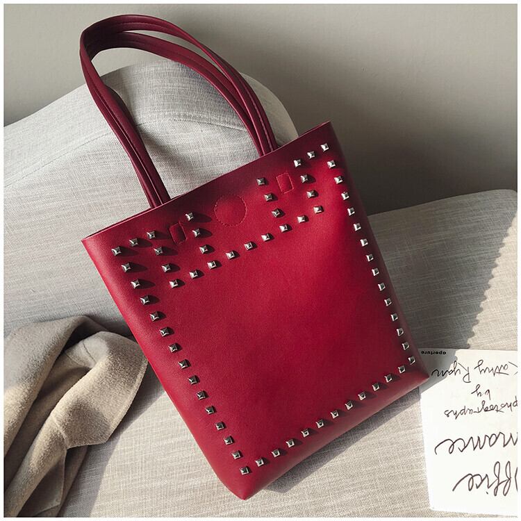 スタッズデコレーション トートバッグ レッド BA00172