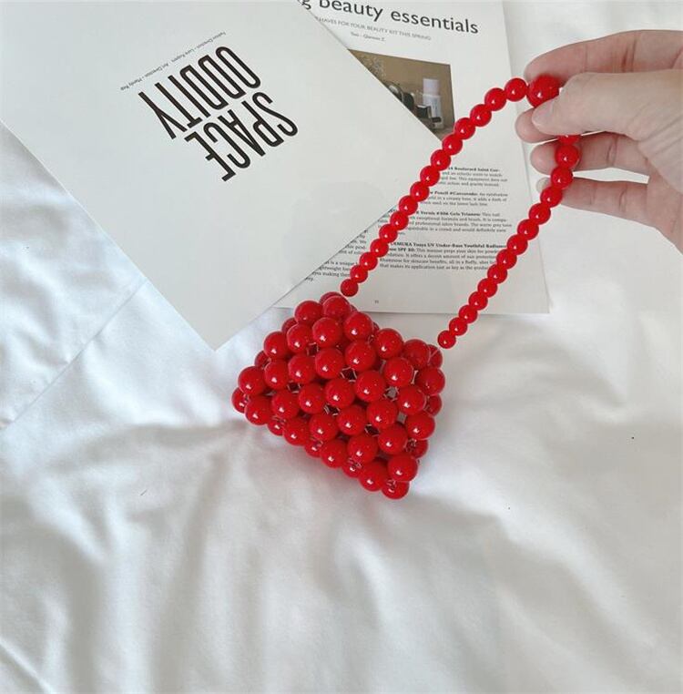 ビーズのミニポシェットです。物はあまり入りません!斜めがけをするとボディーチェーンのようなアクセントになり、コーディネートがセンスアップする、飛び道具的アイテムです☆