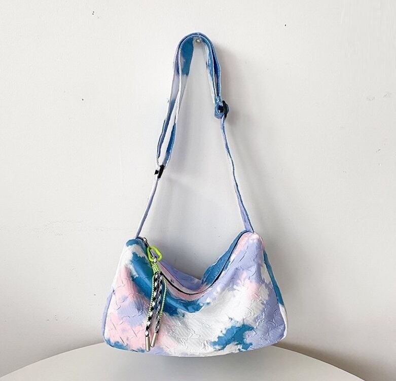 ペインティングのようなデザインがユニークなバッグです。美しいグラデーションとヴィヴィッドなチャームがスタイリッシュ。ブラックコーデのアクセントにおすすめのバッグです。