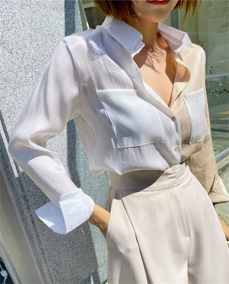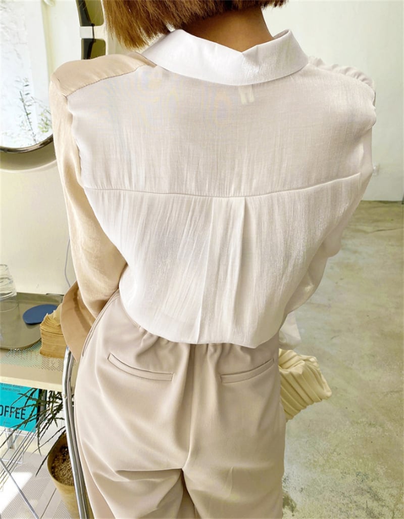 バイカラーブロックシャツ ブラウス ベージュ/ホワイト BL00039