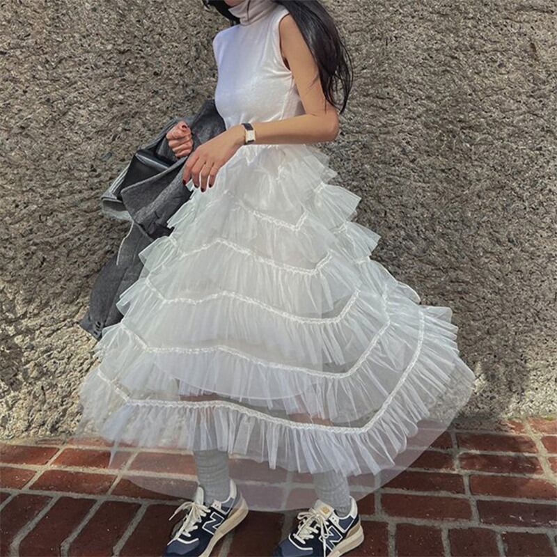チュールのフリルを重ねた、フェミニンなスカートです。エレガントにも、Tシャツやスニーカーでカジュアルにも、1年を通して、幅広い、ユニークなコーディネートが楽しめます。