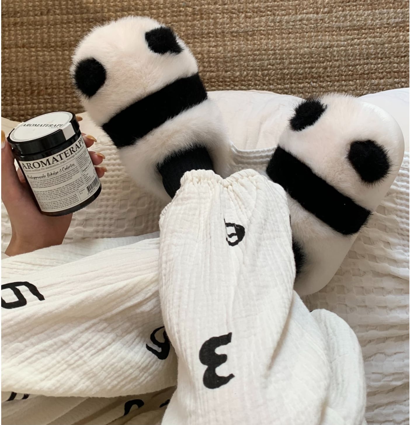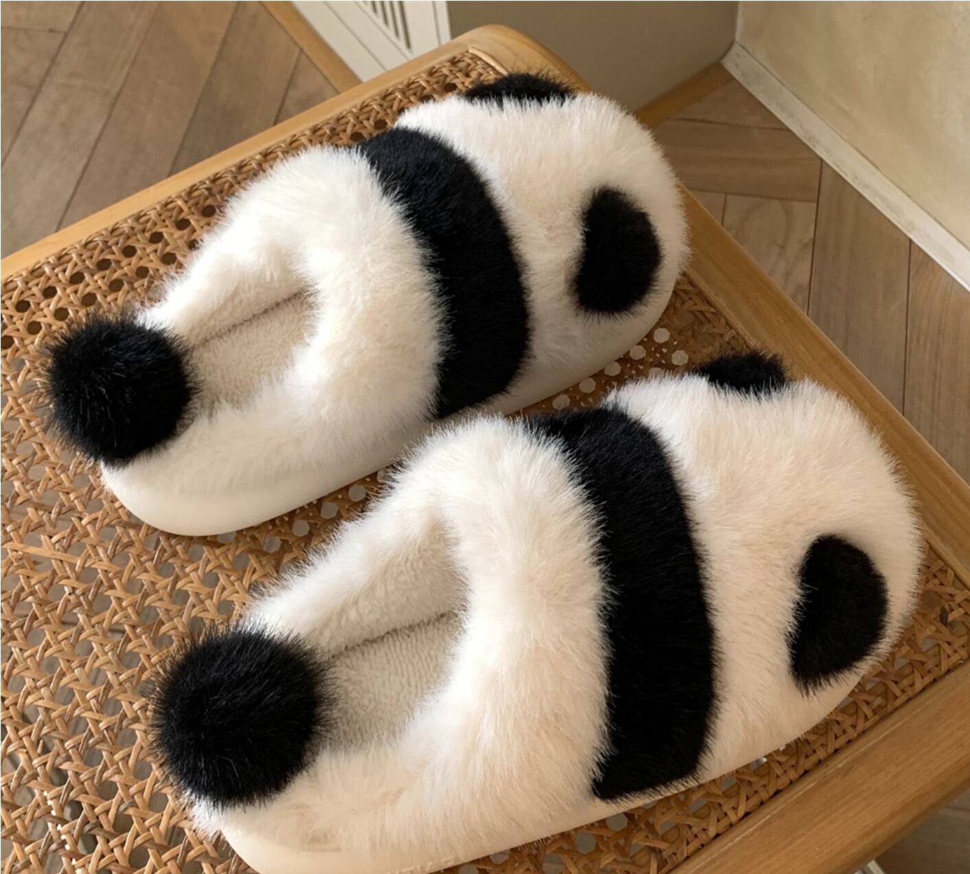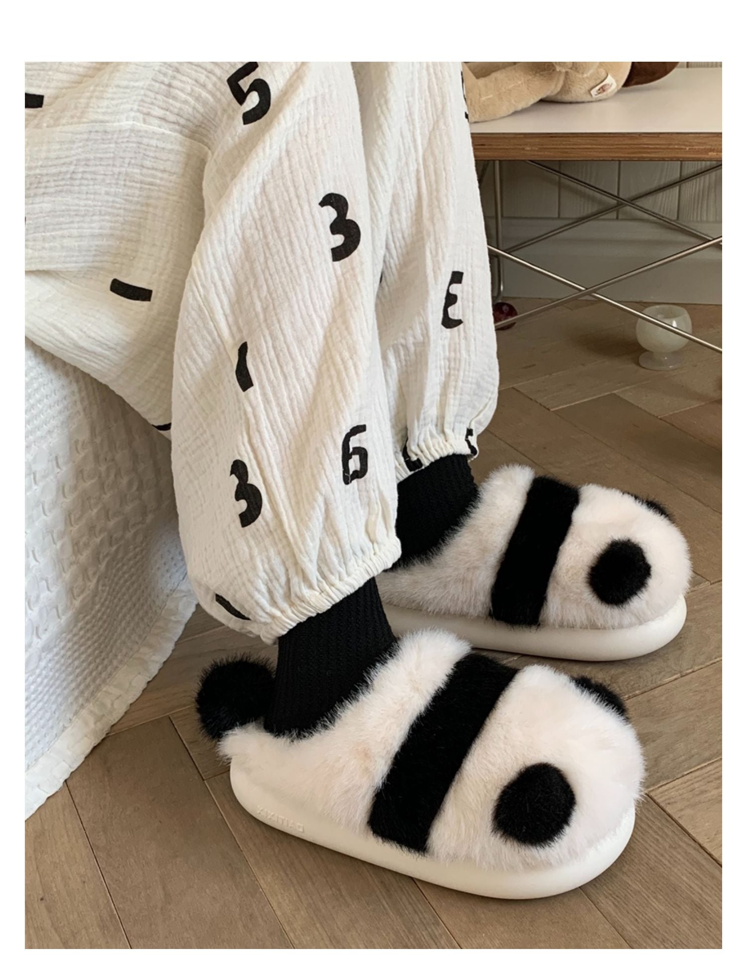 キュートなパンダのルームシューズです。細部までとても可愛く、かなりしっかりした作りです。フェイクファーで寒い季節もほっこり、温かく♪