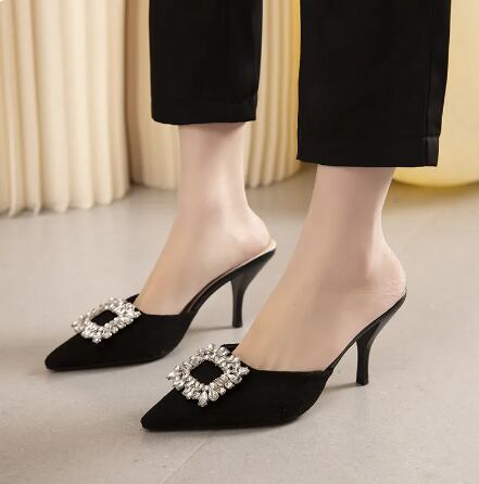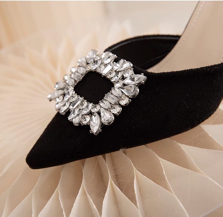 スクエアビジューがエレガントなヒールパンプスです。どんなスタイルも凛としたフェミニンな印象に仕上がります。脚がきれいに見え、歩きやすい6cmヒールも魅力です◎