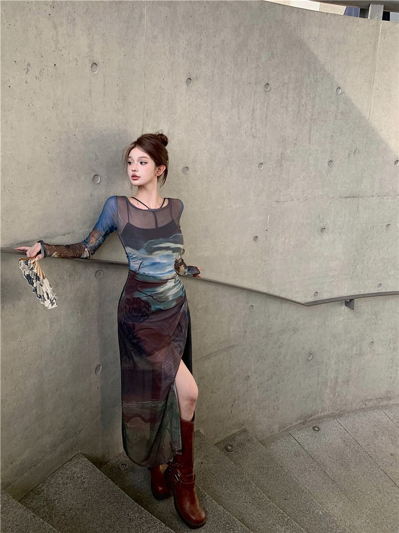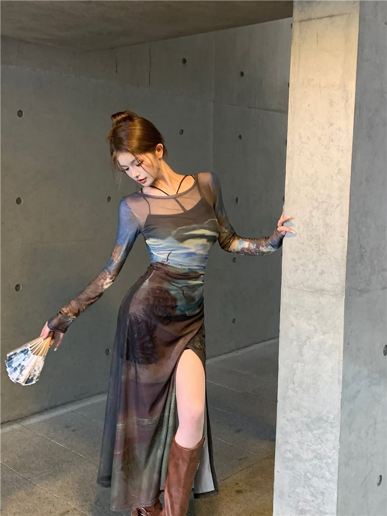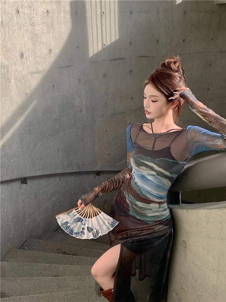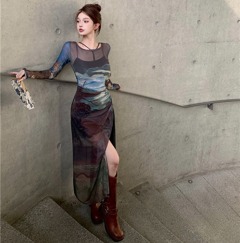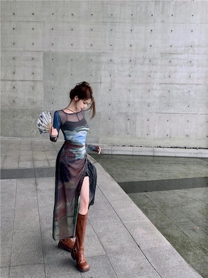 グラフィックプリント シアーワンピース(インナー付き)OP00052