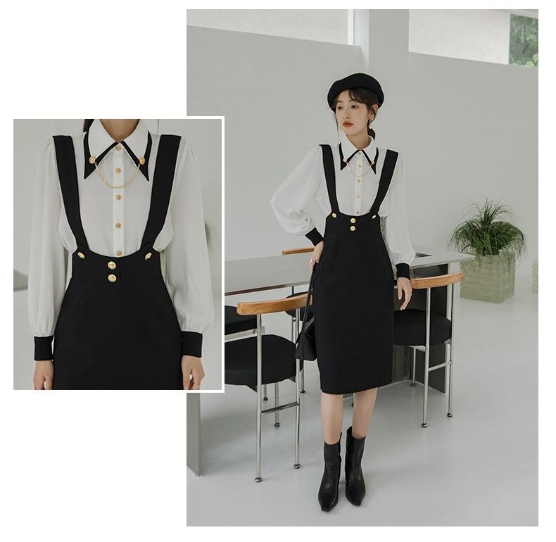 バイカラー 衿チェーン付きブラウス ホワイト/ブラック BL00053