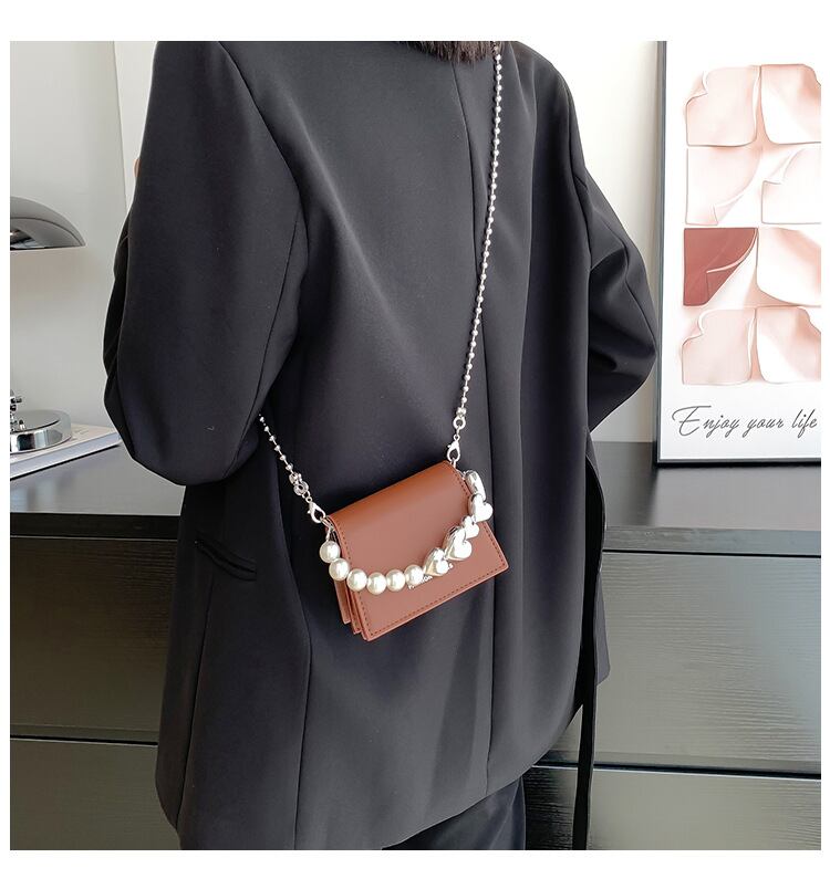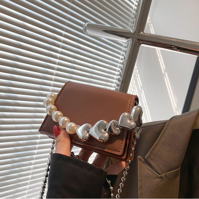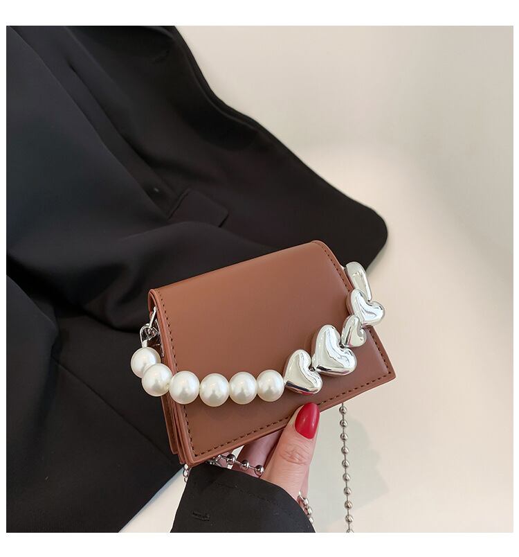 ハート&パールストラップ チェーンポシェット ブラウン BA00211