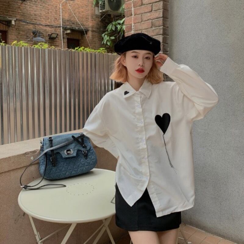 ハートアップリケ シャツブラウス ホワイト BL00061