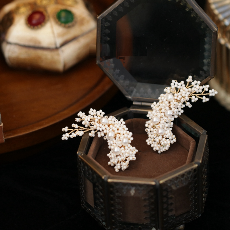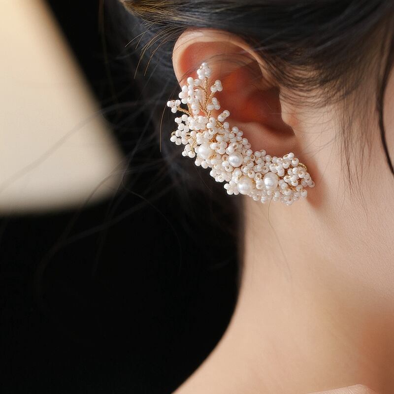 マルチパールをアレンジしたクライマー型のイヤークリップです。ピアスホールがない方でもお使いいただけます。ウェディングドレスにも良く似合います◎