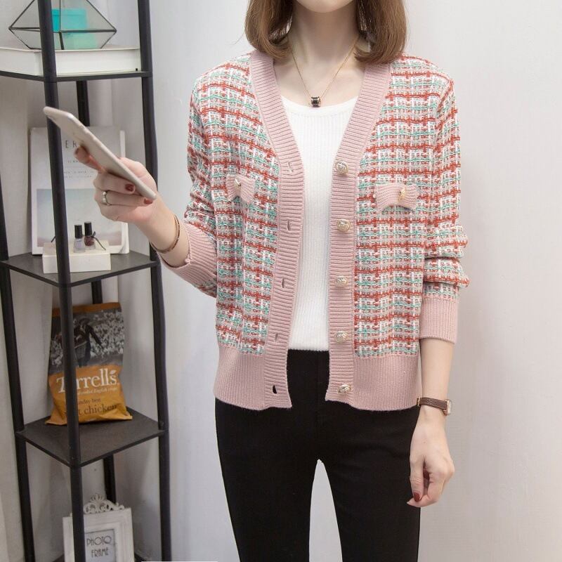 ツイードニュアンス ニットカーディガン ピンクマルチ NI00044
