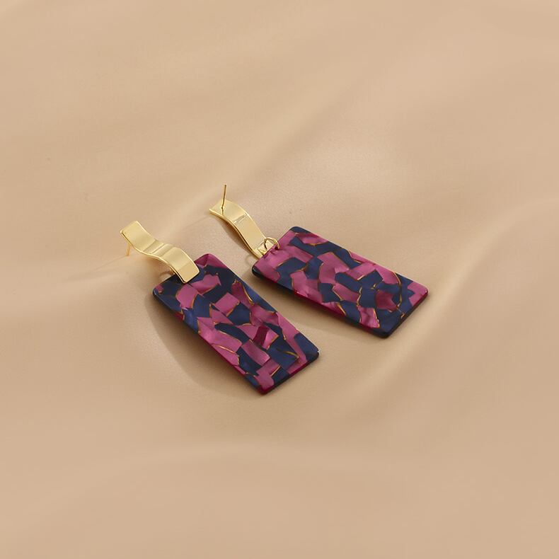 べっ甲のような、螺鈿のような、モザイクがスタイリッシュ。マゼンタをベースにしたマルチカラーが存在感のあるピアスです。個性的なアイテムですが、幅広いコーデに良く似合います。