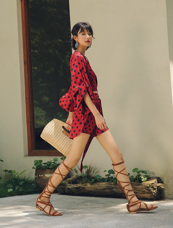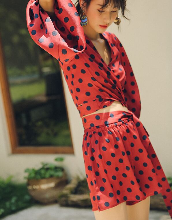 レトロドット カシュクールブラウス+ショートパンツ セットアップ SU00008