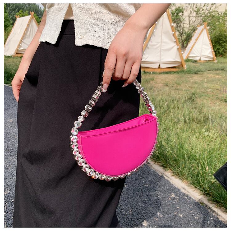 ビジューデコレーション セミサークルハンドバッグ マゼンタピンク BA00231