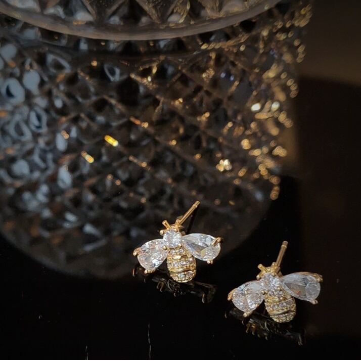 幸せを呼ぶといわれるミツバチのスタッズピアスです。シンプルですが、しっかりアクセントになるデザインです。エレガントからカジュアルまで幅広いスタイルによく似合います。