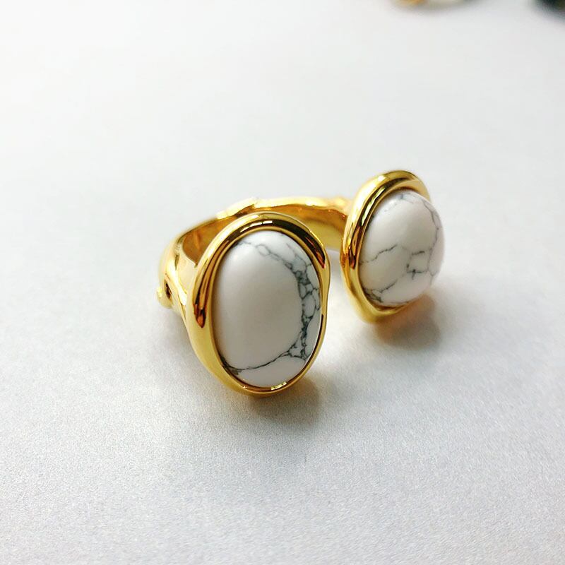 ダブルストーンモチーフリング ゴールド/ホワイトマーブル RI00018