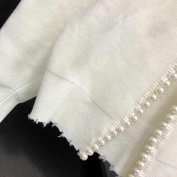 パールのライニングがフェミニンなニットカーディガンです。裾や袖のシャギー加工もアクセントになっています。デニムやスニーカーと合わせても女性らしい印象に仕上がります。