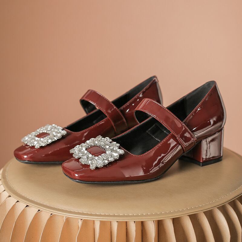 スクエアビジュー ストラップヒールパンプス ワイン SH00054