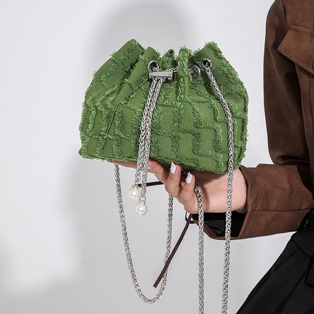 シャギーキャンバス チェーンポシェット グリーン BA00241