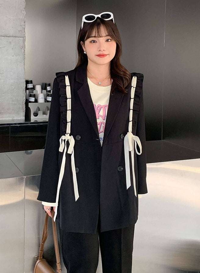 ホワイトダブルリボン フリルジャケット ブラック JK00007