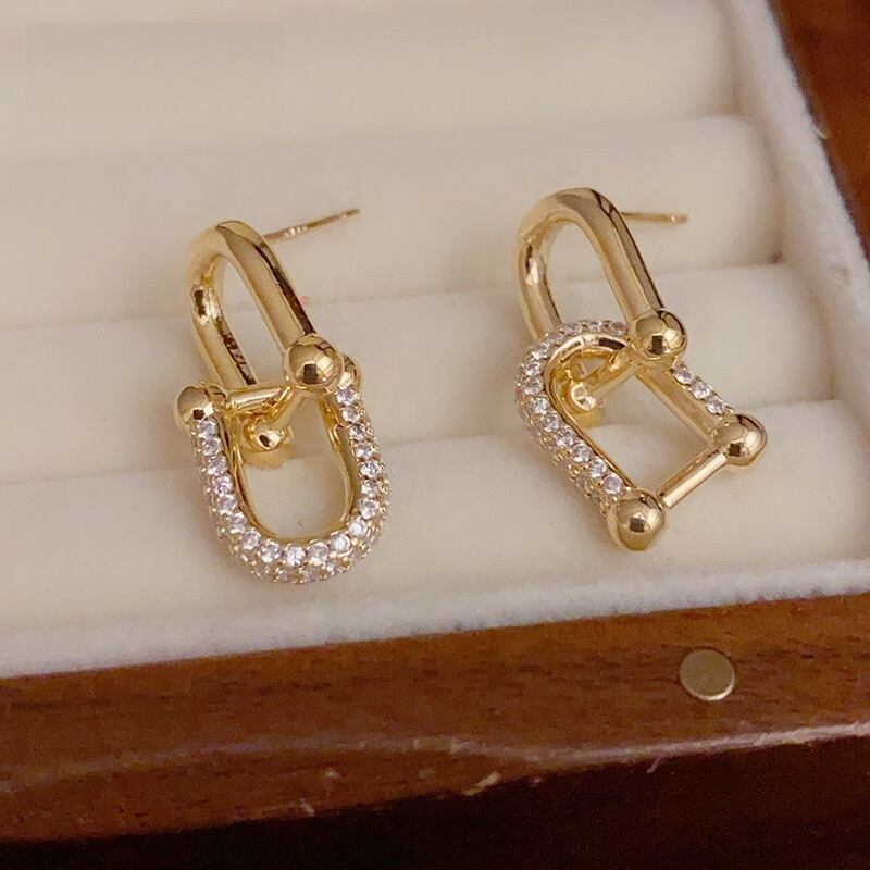 ハードウェアモチーフのドロップピアスです。パヴェクリスタルでエレガントな雰囲気に仕上がります。1年を通して幅広いスタイルに似合う使いやすいピアスです。