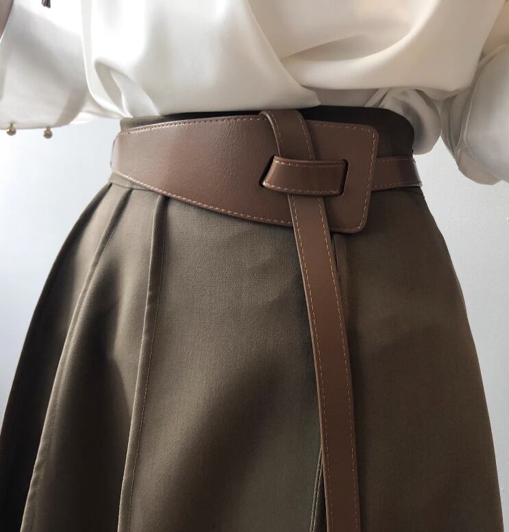 ノットがポイントのワイドベルトです。ジャケットやニット、ワンピース、シャツのアクセントに。いつものコーディネートがフレッシュな雰囲気に仕上がります。