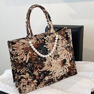 フラワージャカード トートバッグ ラージサイズ ブラウン BA00258