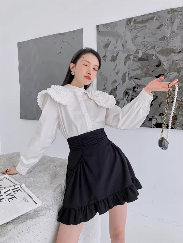 アシンメトリーフリルカラー ブラウス ホワイト BL00081