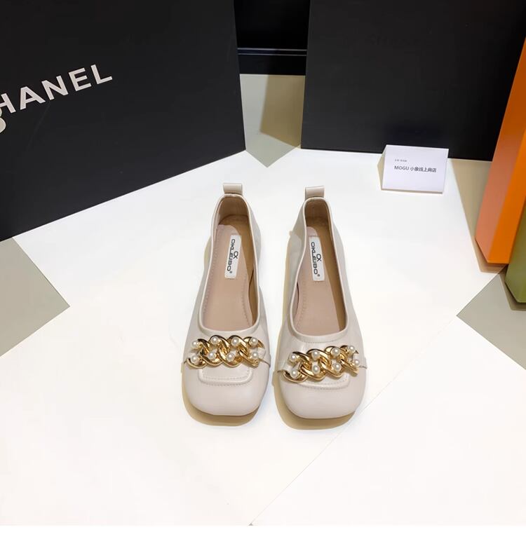 チェーン+パール フラットパンプス ホワイト SH00082